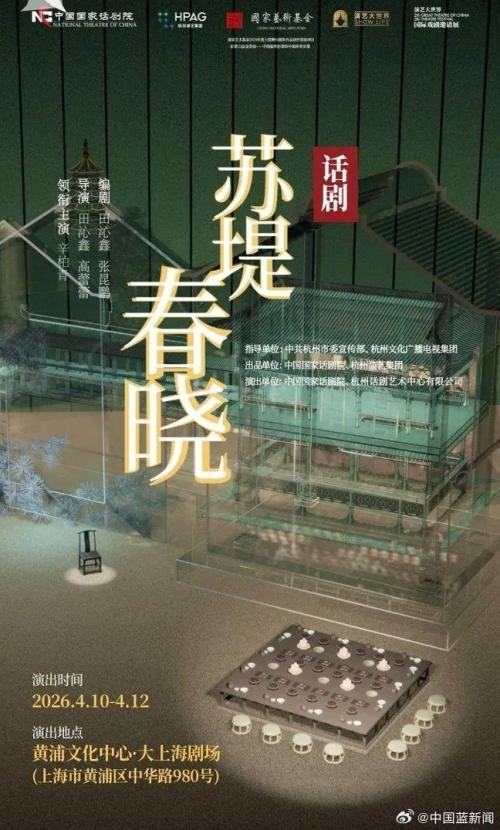 中国娱乐网讯 www.yule.com.cn 中国国家话剧院原创话剧《苏堤春晓》作为2026年演出季首部作品,将于4月在上海上演。该剧由辛柏青时隔半年多复出领衔主演苏东坡,此前演出已积累良好口碑。剧目以新颖的"大宋公务员"视角和非线性叙事,串联苏轼人生片段,融合宋文化与写意精神,展现其旷达境界。开票48小时即售罄,延续了此前票房佳绩。辛柏青的回归引发广泛关注,观众期待他如何诠释这位文豪的复杂人生。