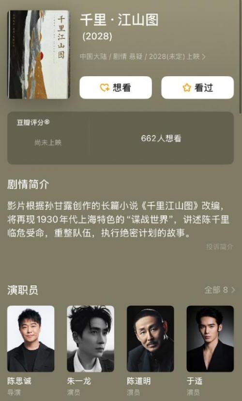 《千里江山图》以北宋名画为背景,讲述画作背后的传奇故事。影片将展现宋代文化风貌与艺术精神,制作团队表示将以最高标准还原历史场景,为观众呈现一场视觉盛宴。